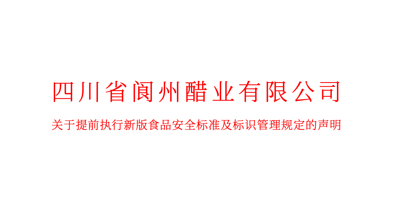 四川省阆州醋业有限公司关于提前执行新版食品安全标准及标识管理规定的声明
